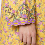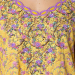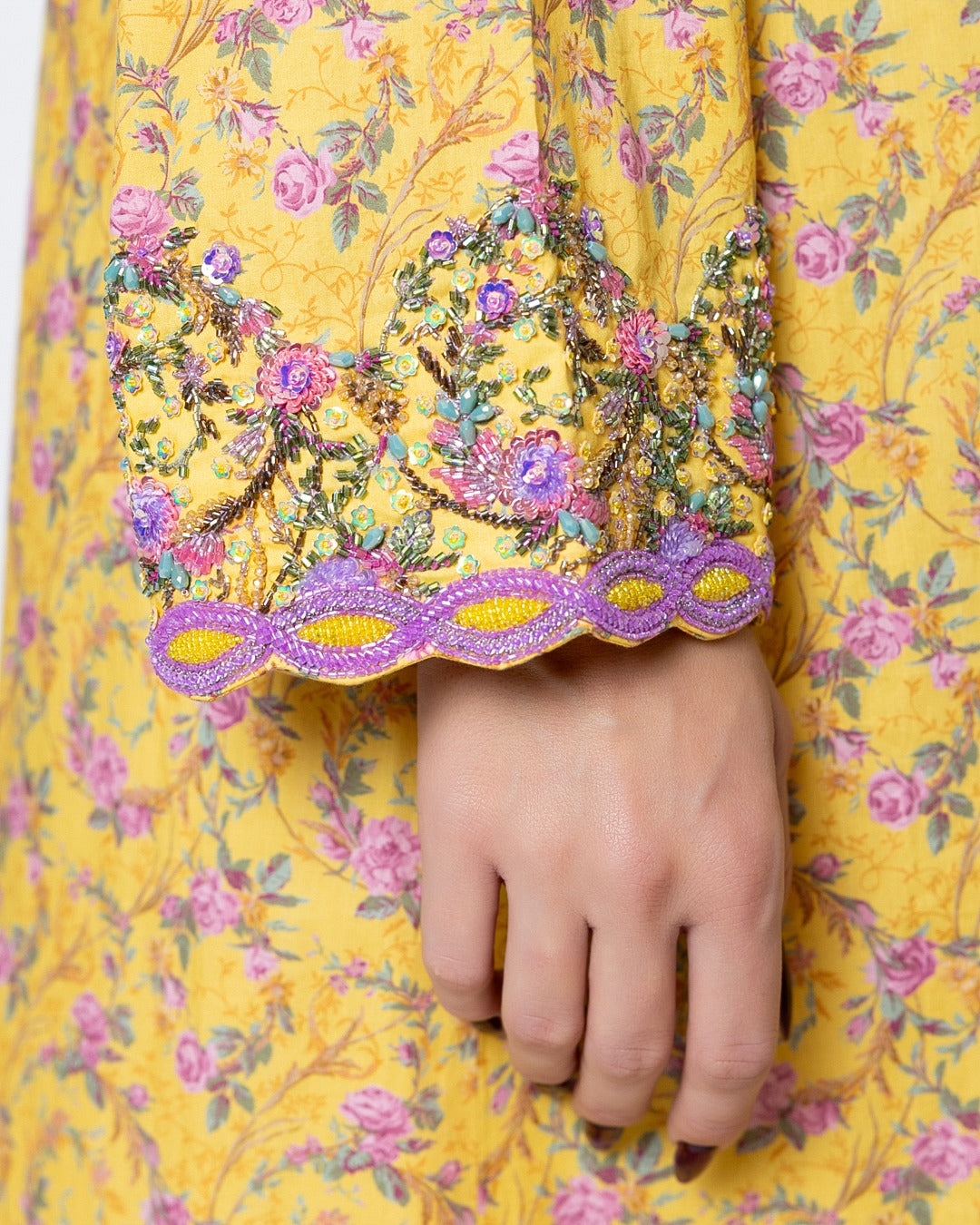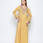 Cotton Liberty floral jalabeeya with refined hand embroidery.